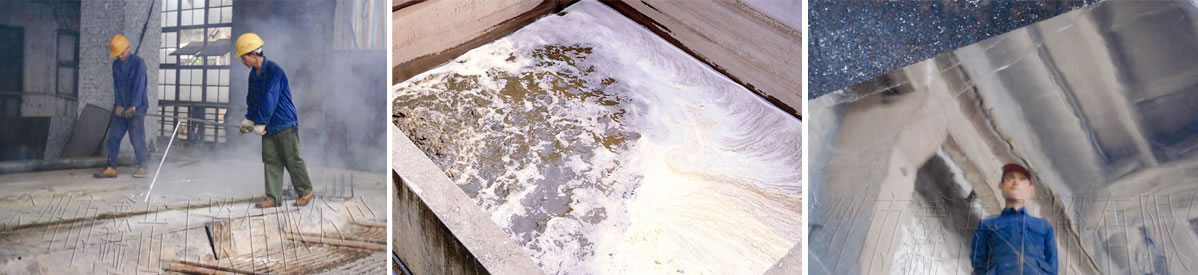 打凈鋅液表面的懸浮物;撒氯化銨(1-1.5公斤/平方米),進(jìn)一步去除表面雜質(zhì)。