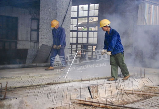 Eliminate suspended substances on the surface of molten zinc; scatter ammonium chloride (1-1.5 kg/ m2) to further eliminate impurity on the surface.