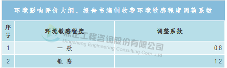 Сбор за консультацию по вопросам воздействия на окружающую среду может основываться на « Стандарте платы за оценку воздействия на окружающую среду строительных проектов» (оценочная цена [2002] 125), в котором расчетная сумма инвестиций используется в качестве основы для расчета платы, и в соответствии с различными характерами и содержанием строительных проектов взимается фиксированная сумма, основанная на расчетной сумме инвестиций.