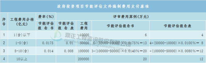 Сборы за консультации по оценке энергосбережения могут быть основаны на местных тарифных стандартах, таких как местные стандарты Шанхая - « Уведомление о расходах на оценку энергосбережения для инвестиционных проектов в основных фондах Шанхая и стандарте оплаты расходов на подготовку документов по оценке энергосбережения для государственных инвестиционных проектов» (Shanghai Development Reform Environmental Fund [2012] 043).