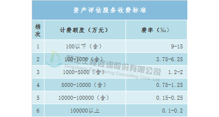 Стандарты взимания платы за услуги по оценке активов могут ссылаться на « Уведомление Национальной комиссии по развитию и реформам, Министерства финансов о выпуске « Меры по управлению сборами за оценку активов» (№ 2914 об изменении цены выпуска [2009] ») и « Циркуляр о внедрении « Меры по управлению сборами за оценку активов», чтобы как можно скорее выполнить работу по управлению сборами за оценку активов» (№ 199 Китайской ассоциации по оценке [2009]).